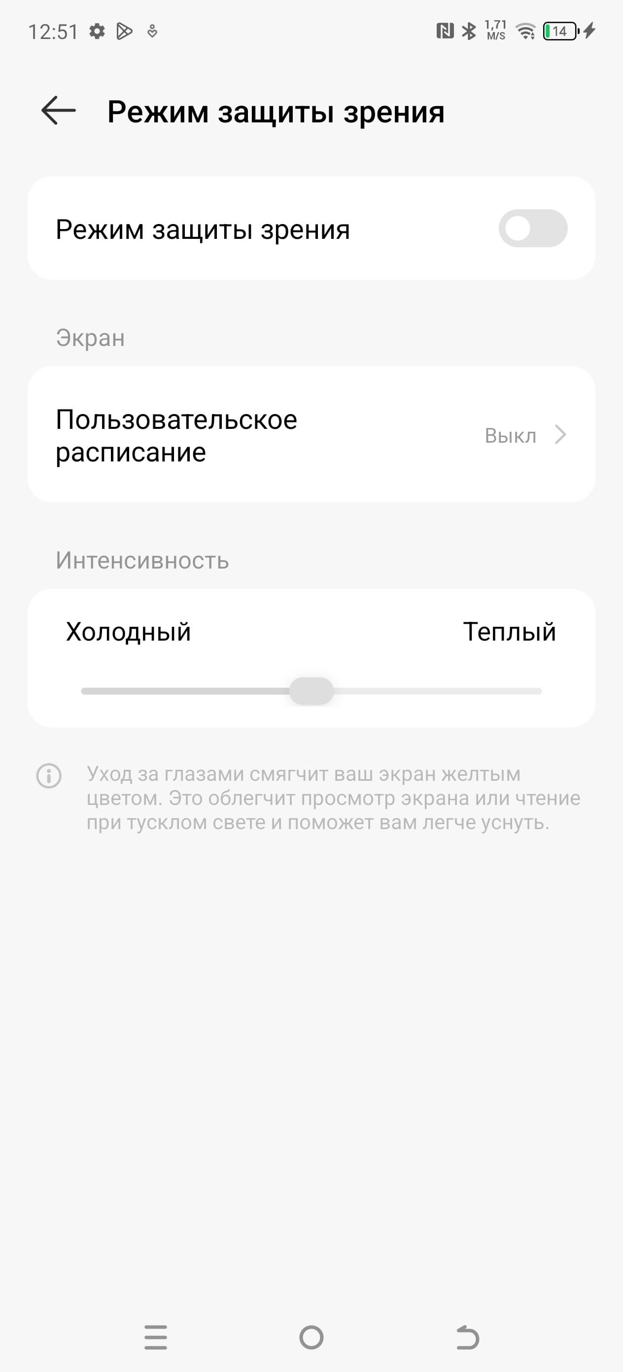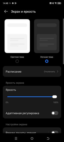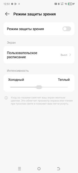 Разумеется, присутствует настройка (Режим защиты зрения), позволяющая снизить интенсивность синей компоненты. В принципе, яркий свет может приводить к нарушению суточного (циркадного) ритма (см. статью про iPad Pro с дисплеем 9,7 дюйма), но все решается снижением яркости до низкого, но еще комфортного уровня, а искажать цветовой баланс, уменьшая вклад синего, нет абсолютно никакого смысла.