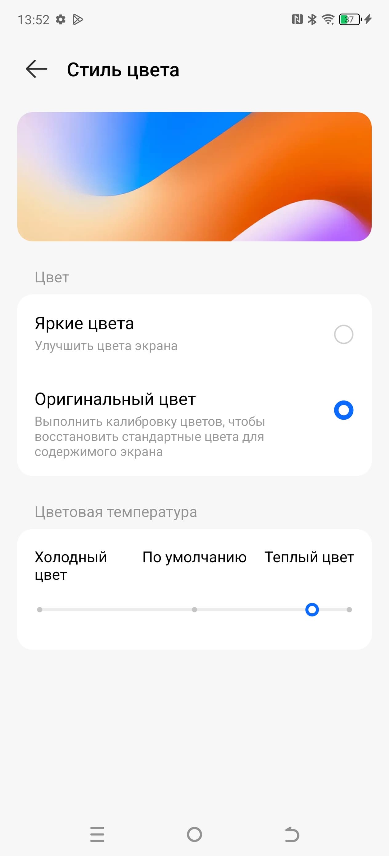Фотография выше получена после выбора профиля Оригинальный цвет в настройках экрана. Всего профилей два.