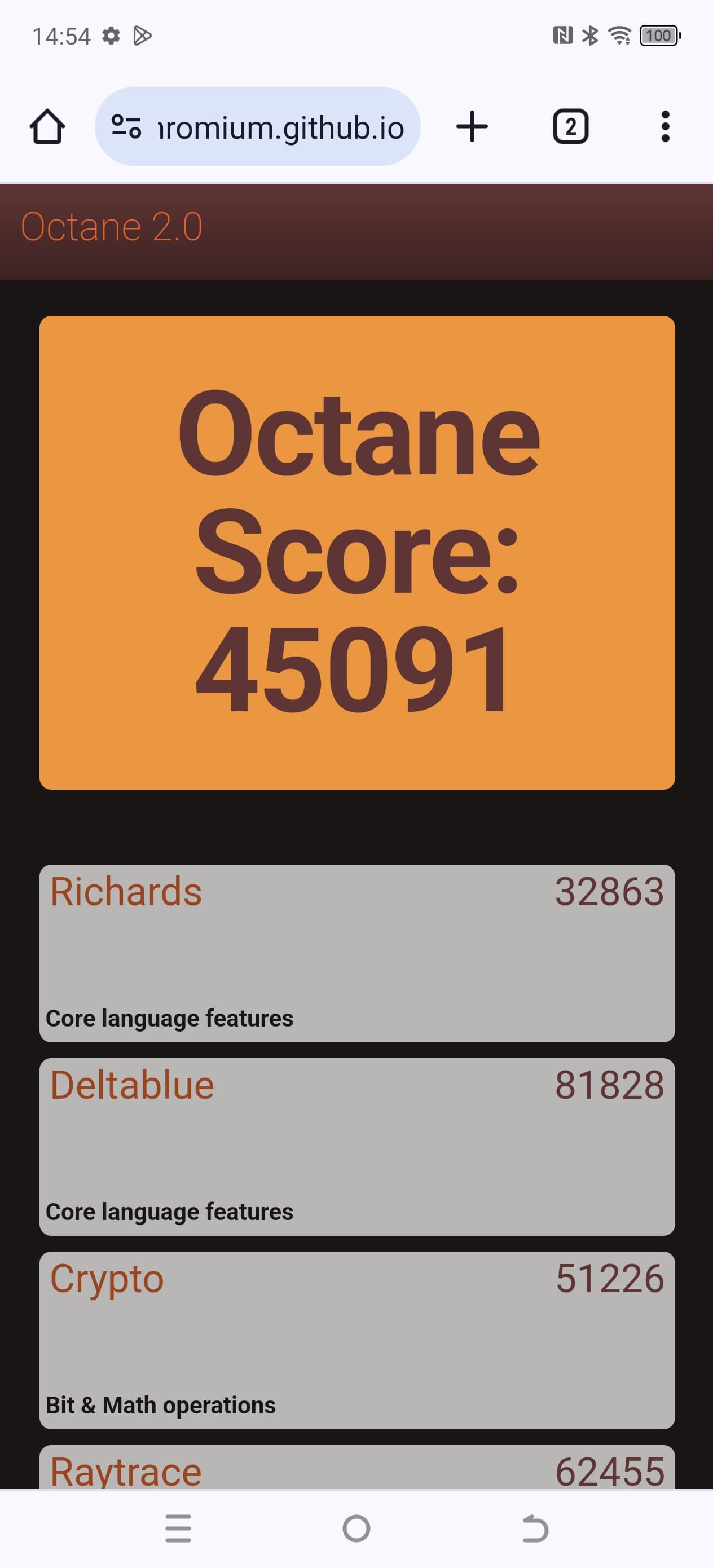 | Google Octane 2 (больше — лучше) | 45091 | 30361 | 30529 | 52617 | 5180 |