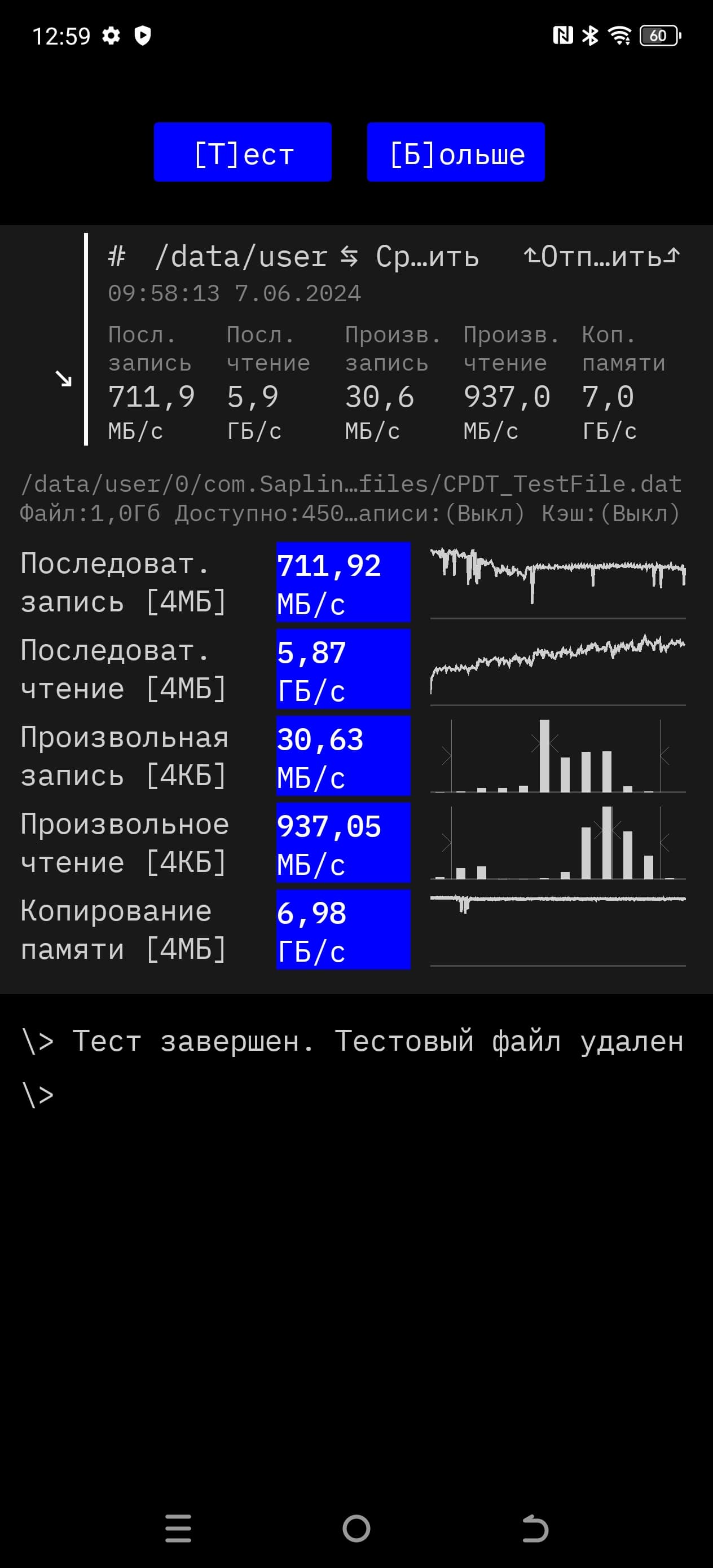 Результаты тестов на скорость работы с памятью: