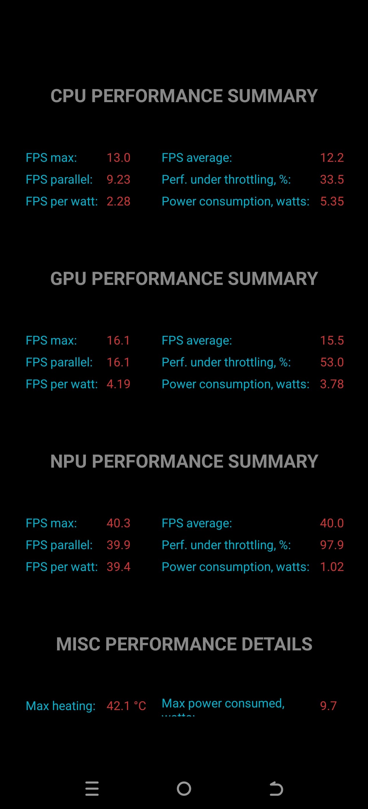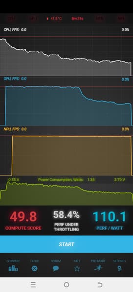 Тест на снижение производительности при нагреве мы проводим с помощью программы Burnout Benchmark, которая позволяет нагружать CPU, GPU и NPU: