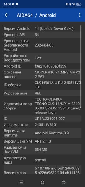 - Операционная система Android 14, HiOS 14