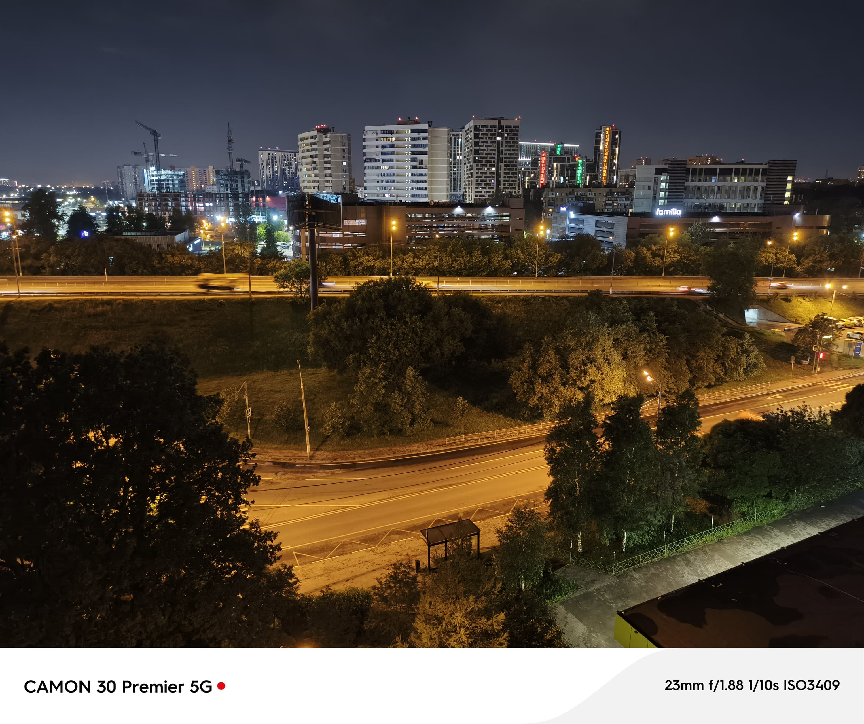 С учетом всего сказанного выше, к ночному режиму претензий мало. Срабатывает какой-то внутренний ограничитель, и камера перестает агрессивно избавляться от шумов, но при этом очень эффективно их приглушает, так что снимки хорошо смотрятся в полный размер. Претензии всё равно есть, однако в целом такие фотографии выглядят даже лучше, чем дневные, особенно за счет удачного баланса выдержки: картинка смотрится по-настоящему ночной.
