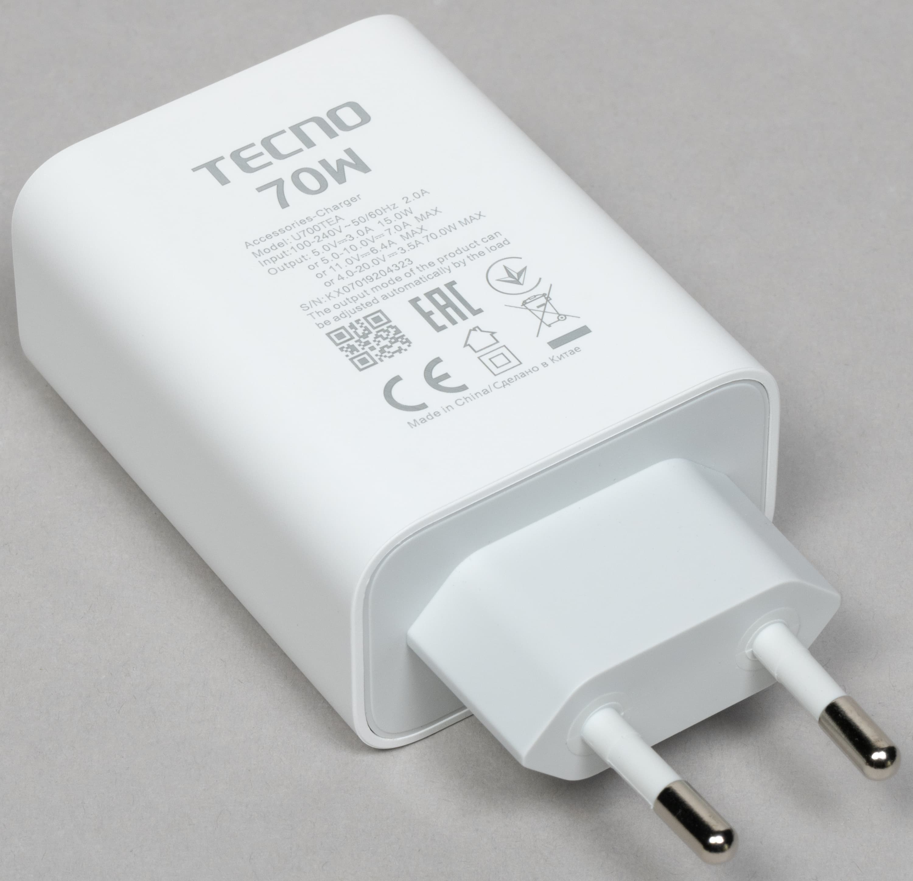 От комплектного зарядного устройства (70 Вт) смартфон зарядился за 55 минут. Беспроводная зарядка не поддерживается.