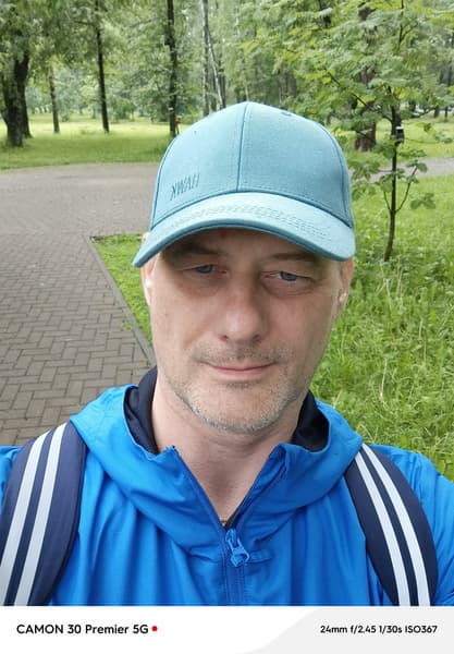 Фронтальная камера (50 Мп, f/2,5, 24 мм) хорошо фокусируется на объекте, отлично передает детали, всё прекрасно и с резкостью. Пожалуй, снимки чуть пересвечены, но вполне терпимо. Фон размыт естественным образом, не столь красиво, как это делается программно, но зато и нелепых «косяков» обтравки по контуру нет. В целом очень неплохо.