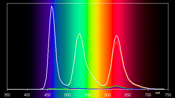 В этом случае спектры компонент (то есть спектры чистых красного, зеленого и синего цветов) очень хорошо разделены: