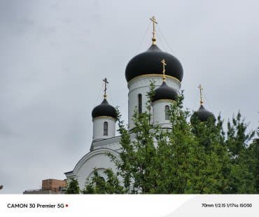 Зум-камера с сенсором Samsung Isocell JN1, реализующая оптический зум 3×, тоже предлагает два варианта разрешения, но здесь уже обходится без сюрпризов: это 12 Мп или 48 Мп. Обработка уменьшенных фотографий здесь столь же агрессивная, на пользу это не идет, а вот полноразмерные фотографии оставлены «как есть» и вполне неплохи в плане детализации, хотя, конечно, рыхловаты (сам сенсор гораздо меньше). Можно добавить, что снимки темноваты, широты динамического диапазона всё же немного не хватает. Для съемки отдаленных объектов эта камера весьма эффективна, она действительно позволяет разглядеть удаленные детали, а вот в качестве портретного объектива с такой обработкой работать будет плохо — придется грузить полноразмерные фотографии в графический редактор.