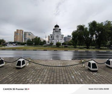 Широкоугольный модуль Hynix Hi-5022Q даже получил автофокус, что в таких камерах встречается нечастно. Для съемки общих планов это не так важно, а вот при задействовании ширика для макросъемки может пригодиться, хотя именно к автофокусу в этом режиме у нас были претензии. Качество фото типичное грустное: достаточно резкий только центр кадра, где эта резкость усугублена шарпингом. Съемка возможна в те же 12 Мп или 48 Мп, но полноразмерный вариант вообще никуда не годится. В итоге снимки на эту камеру с натяжкой могут использоваться в качестве миниатюр.