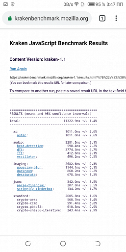 | Mozilla Kraken (мс, меньше — лучше) | 11323 | 15931 | 11431 | 16739 | 11910 |