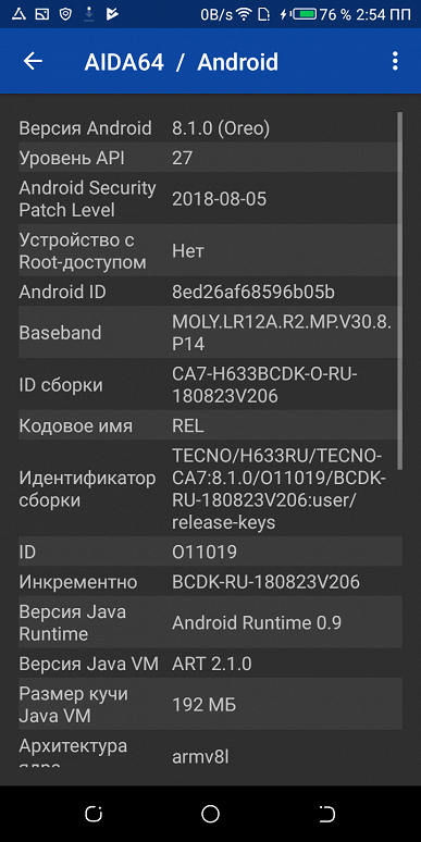 В качестве программной платформы во всех современных смартфонах Tecno используется собственная оболочка hiOS. В данной модели установлена третья версия на основе Android 8.1, хотя в том же Camon 11 уже можно увидеть четвертую версию интерфейса. Впрочем, заметных, бросающихся в глаза различий между этими версиями нет.