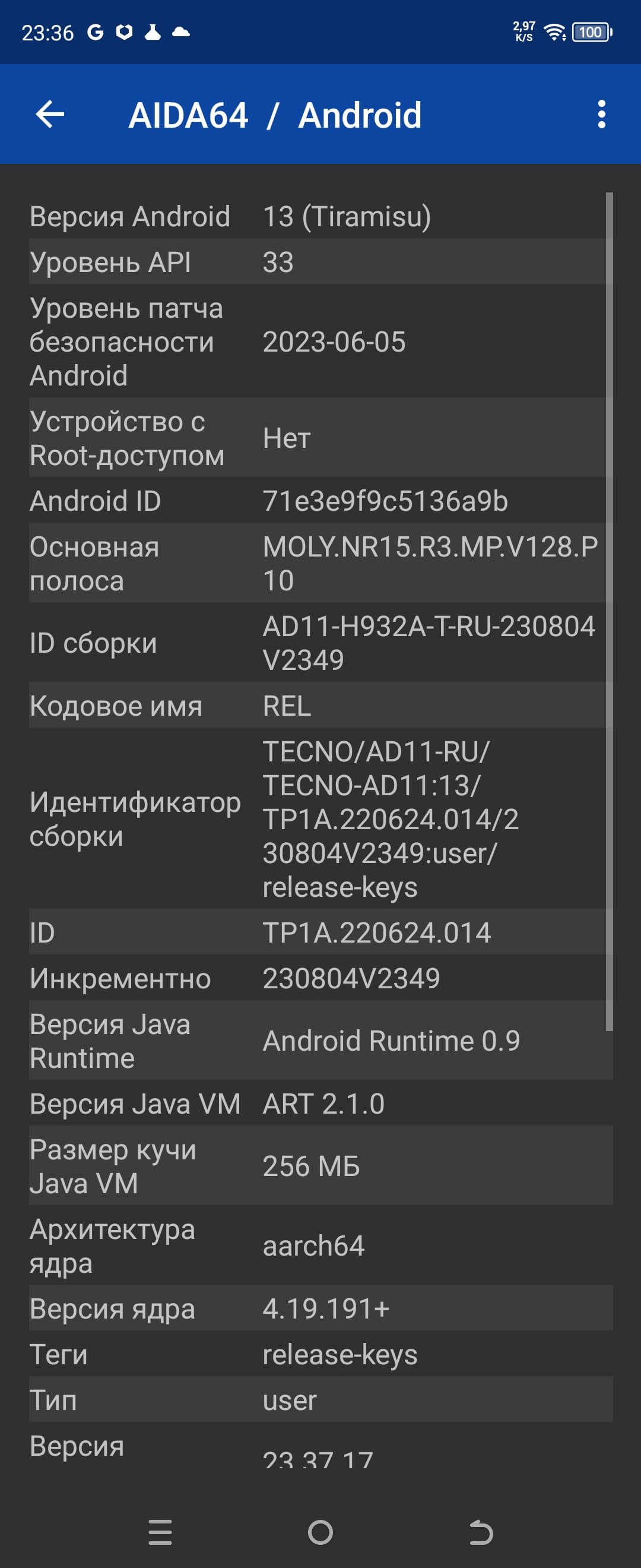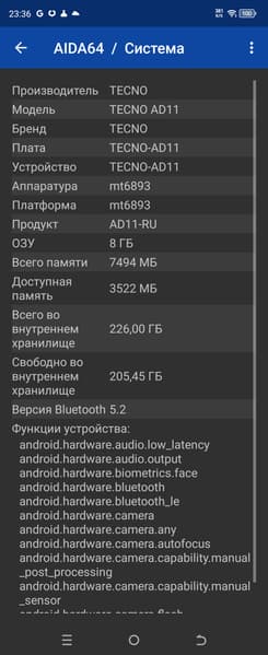 - Операционная система Android 13, HiOS 13.5