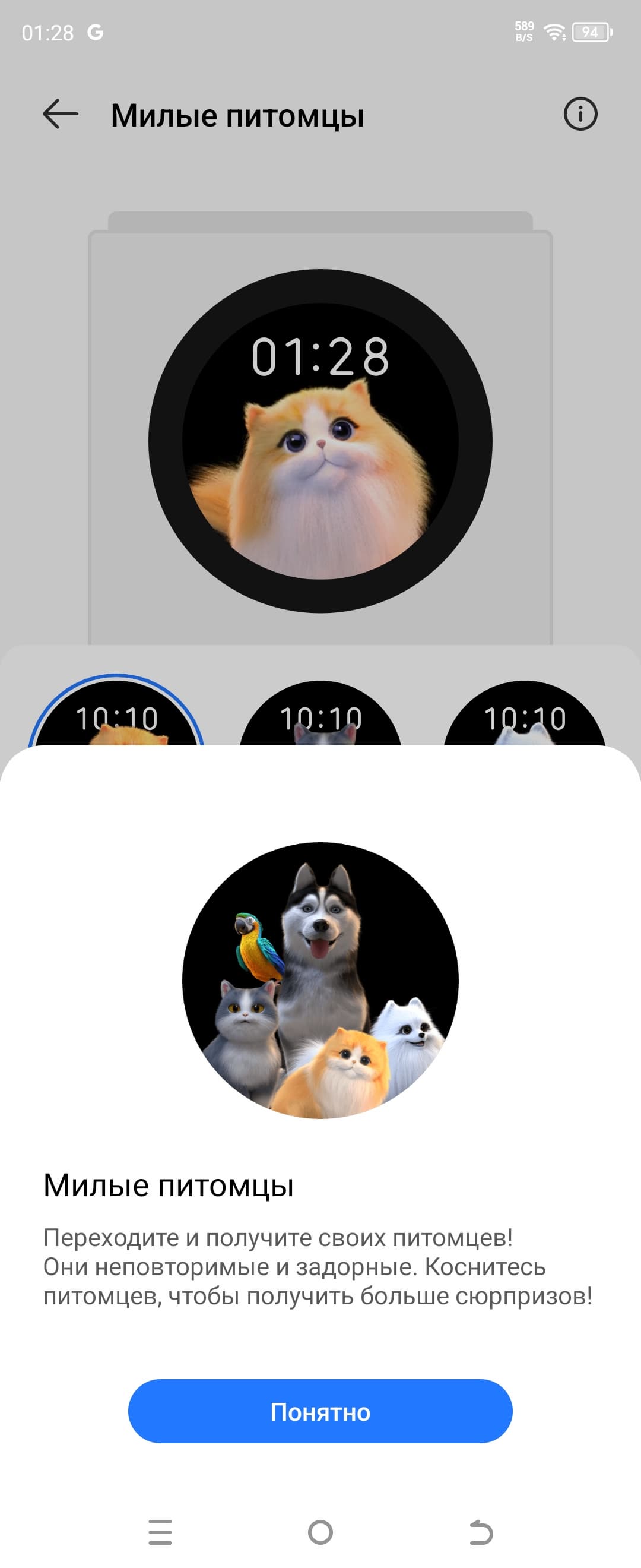 На внешний экран можно вывести анимированную картинку (забавных животных в стиле, любимом азиатами), но есть и вариант со множеством специальных виджетов для этого дисплея — от прогноза погоды до подсчета калорий.