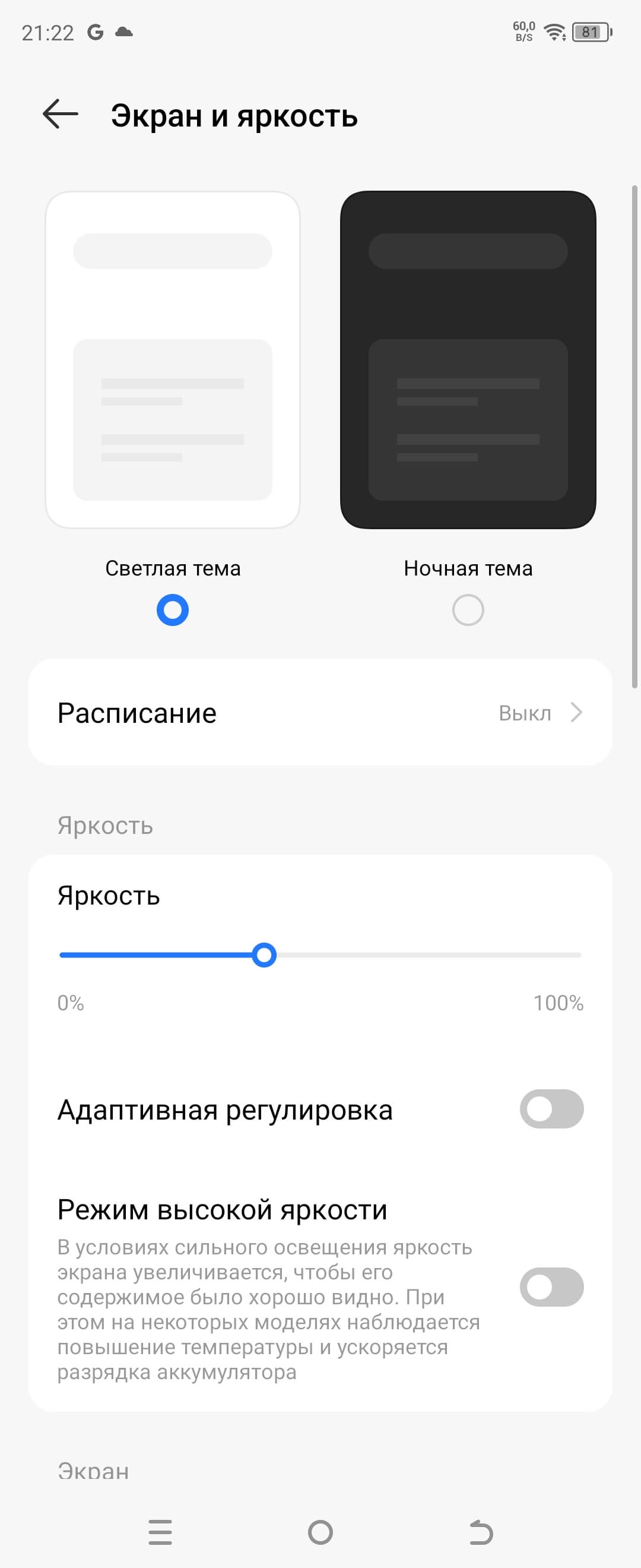 Дополнительно можно регулировать оттенок (Холодный цвет — Теплый цвет).