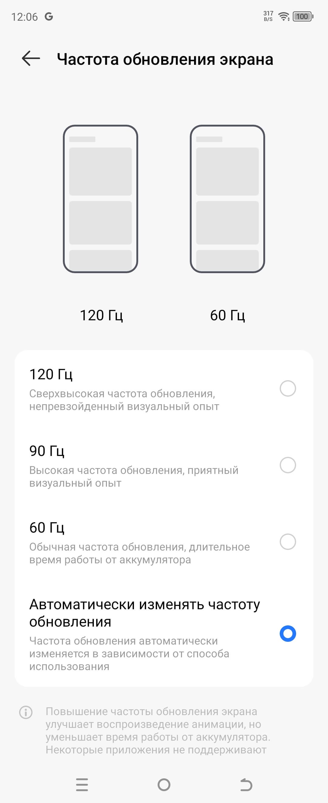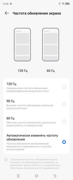 В настройках экрана можно включить режим с повышенной до 90 и 120 Гц частотой обновления: