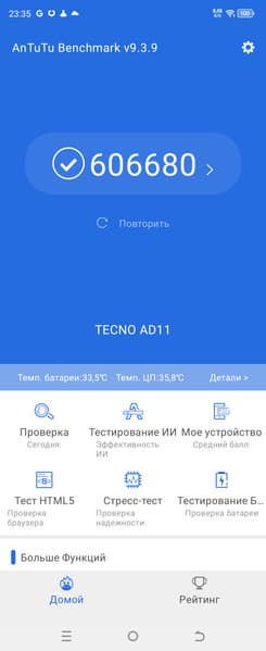 | AnTuTu (v9.x) (больше — лучше) | 606680 | 788102 | 835915 | 727479 | 1180538 |