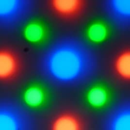Полноцветное изображение создается с помощью субпикселей трех цветов — красного (R), зеленого (G) и синего (B) — в равном количестве.