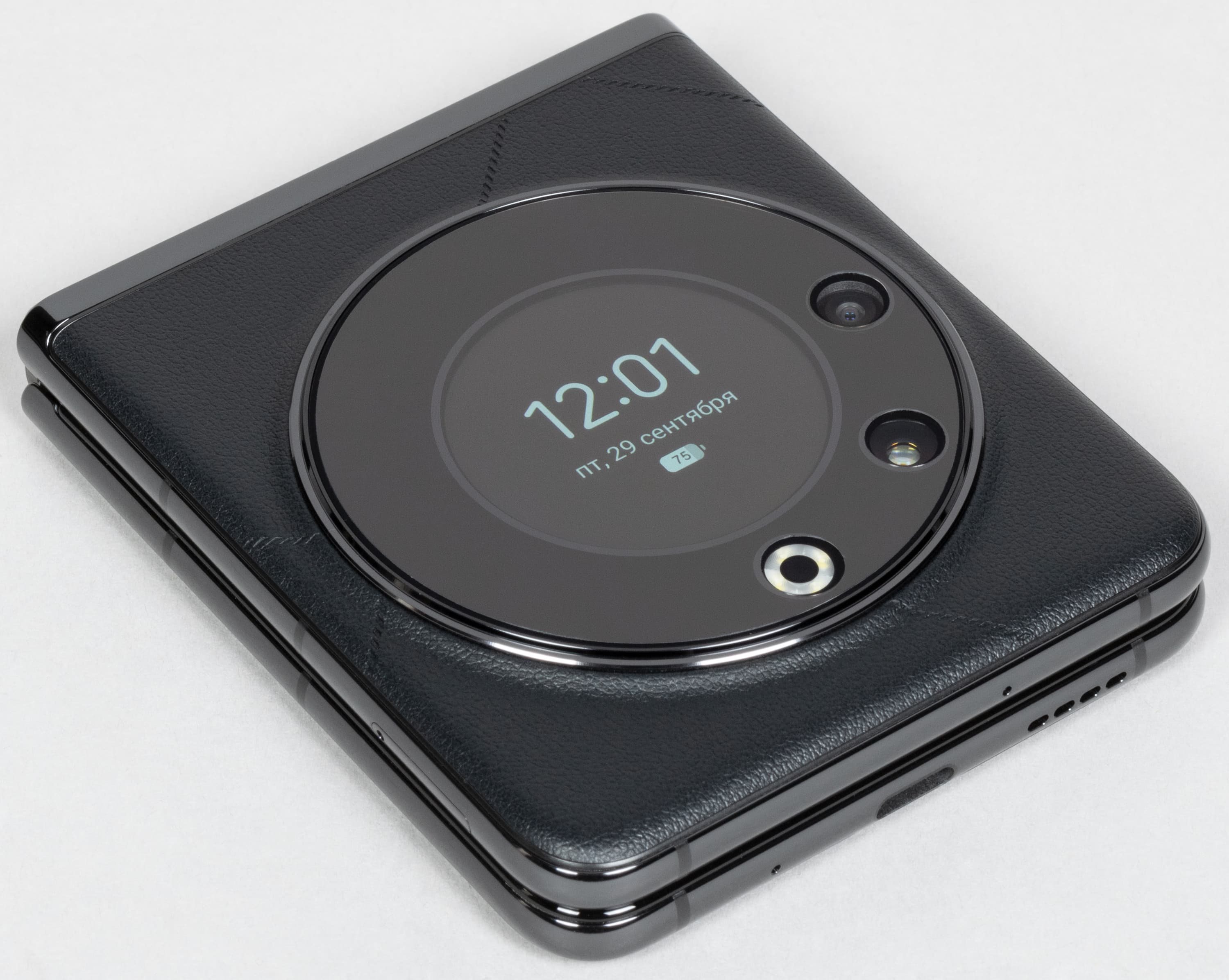 Tecno Phantom V Flip 5G выполнен в форм-факторе «вертикальной раскладушки». То есть половинки здесь раскрываются не как страницы книги, а как у мобильных телефонов-«раскладушек» из прошлого.