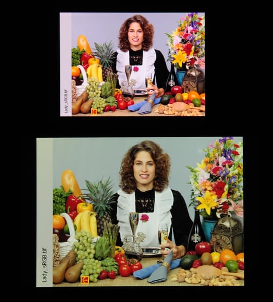 Отметим, что на экранах с уширенным цветовым охватом (без соответствующей коррекции) цвета́ обычных изображений, оптимизированных для устройств sRGB, выглядят неестественно насыщенными.