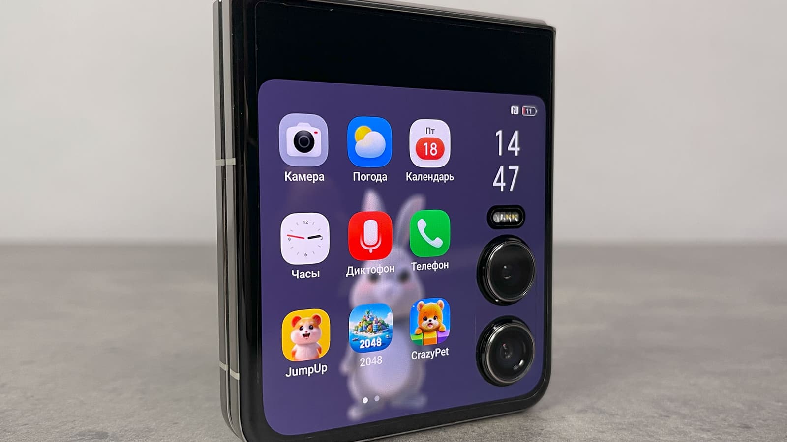 Для работы с раскладывающимся экраном некоторые приложения из фирменного набора были оптимизированы. Например, это касается управления камерой: в полуразложенном виде смартфон можно использовать без штатива на любой твердой поверхности, чтобы снимать видео или вести трансляцию. При этом внешний экран может выступать в роли видоискателя.