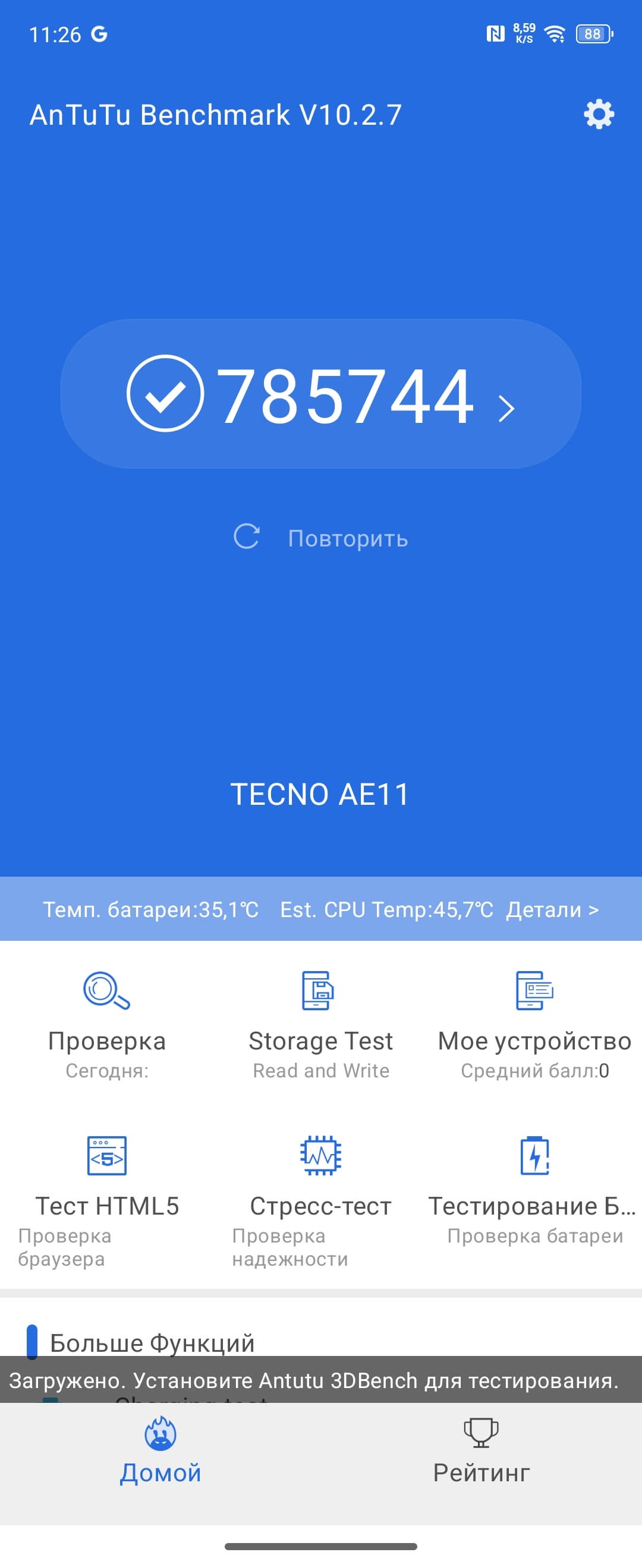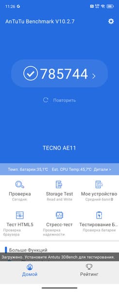 | AnTuTu (v10.x) (больше — лучше) | 785744 | 792657 | 1297546 | 1033512 | 620852 |