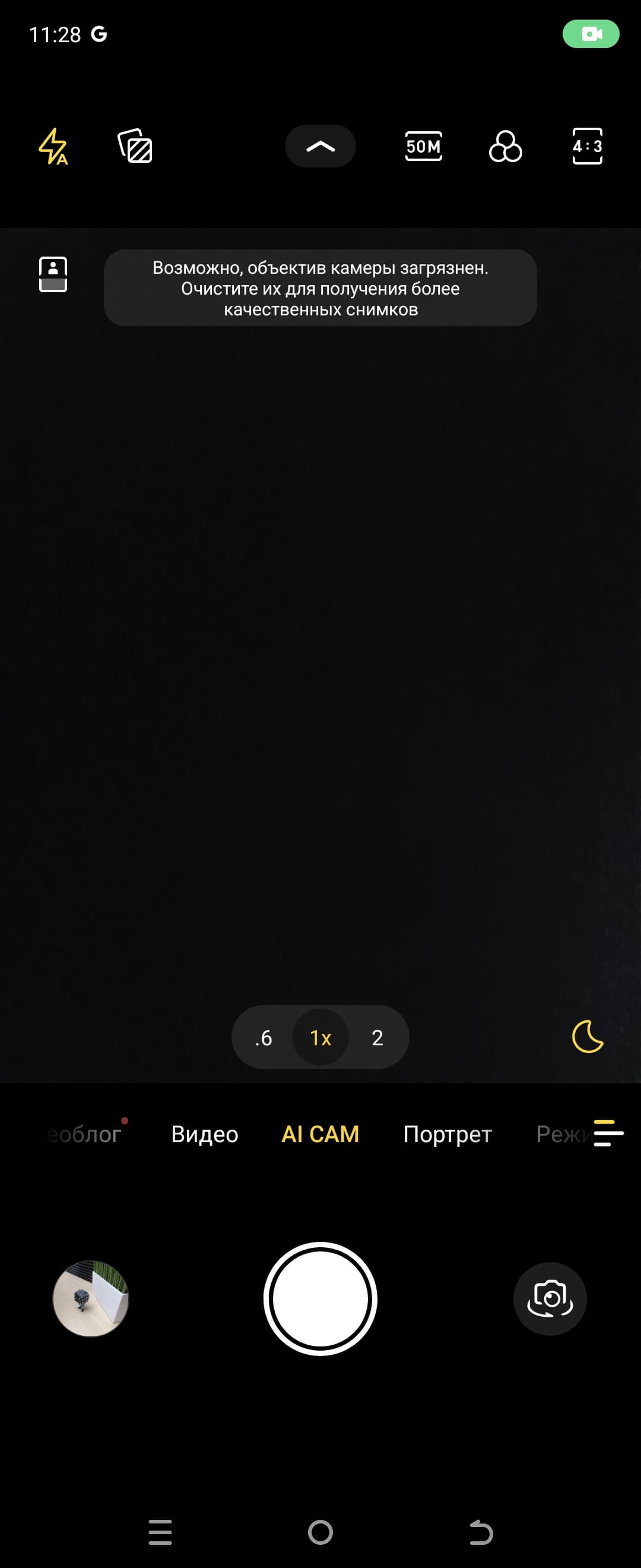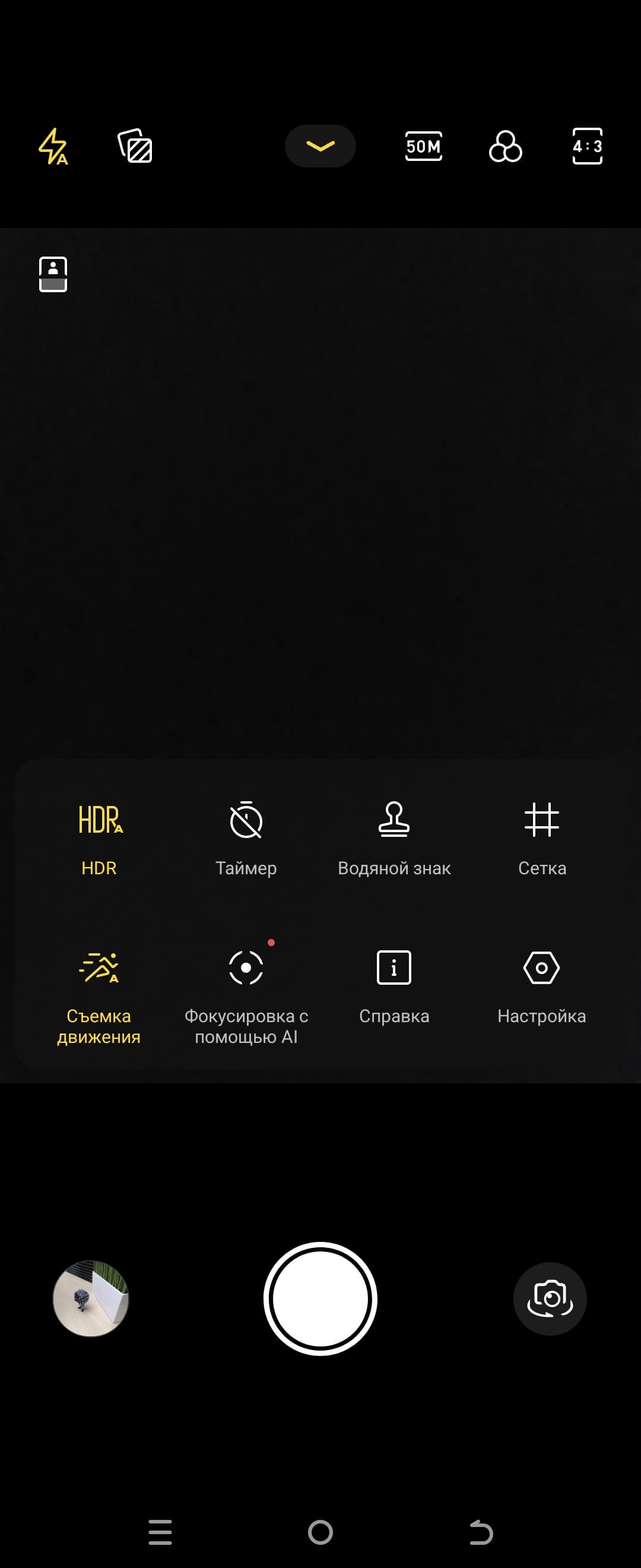 Отдельного режима для макросъемки в интерфейсе управления камерой нет, но при приближении к объекту съемки система автоматически переключается на широкоугольную камеру.