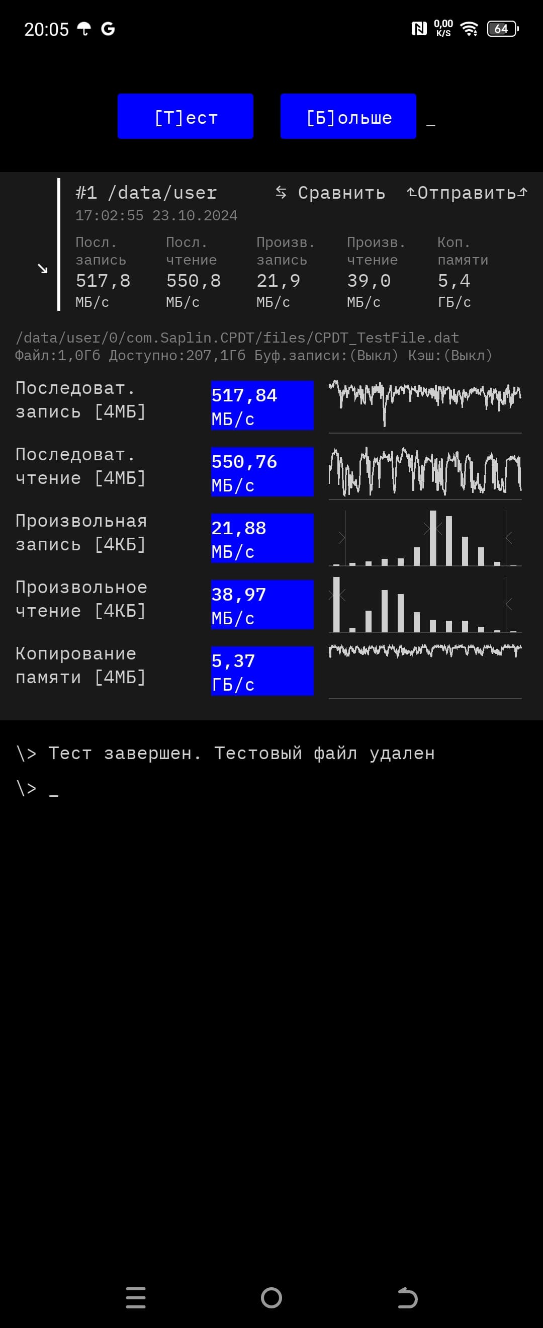 Результаты тестов на скорость работы с памятью: