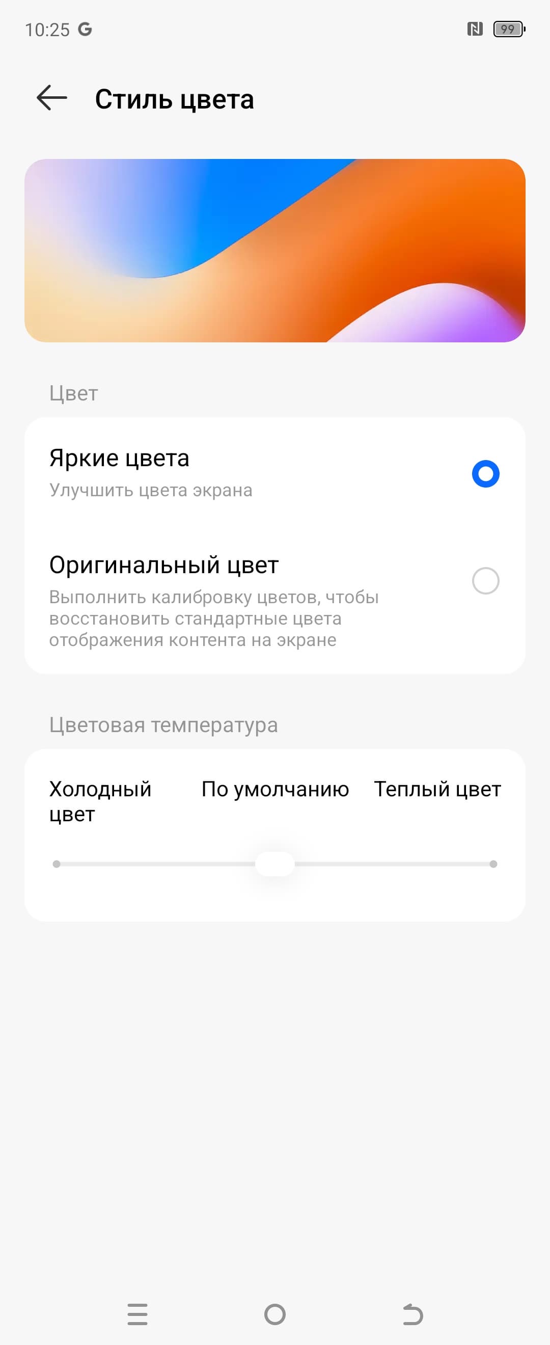 Отметим, что на экранах с уширенным цветовым охватом (без соответствующей коррекции) цвета́ обычных изображений, оптимизированных для устройств sRGB, выглядят неестественно насыщенными. Отсюда и рекомендация: в большинстве случаев смотреть кино, фотографии и все естественное лучше при выборе профиля Оригинальный цвет с использованием штатной программы Галерея AI. Но не исключено, что есть и другие программы, которые могут корректировать цветовой охват в соответствии с возможностями экрана.
