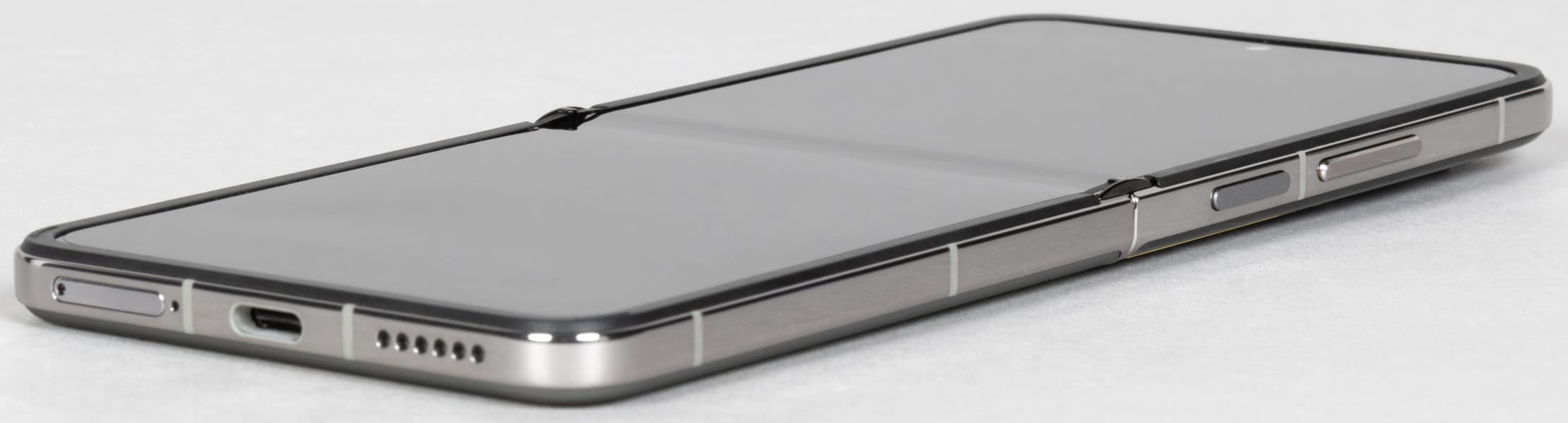 Материалы изготовления корпуса достойные: окантовка из алюминия с гладкой скользкой хромированной поверхностью удерживает две половинки со стеклянной поверхностью, а сам шарнир выполнен из стали. Внешний дисплей прикрыт защитным стеклом Corning Gorilla Glass Victus 2.
