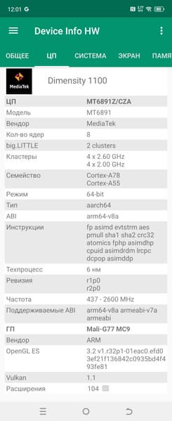 - SoC MediaTek Dimensity 8020, 8 процессорных ядер (4×Cortex-A78 @2,6 ГГц + 4×Cortex-A55 @2,0 ГГц)