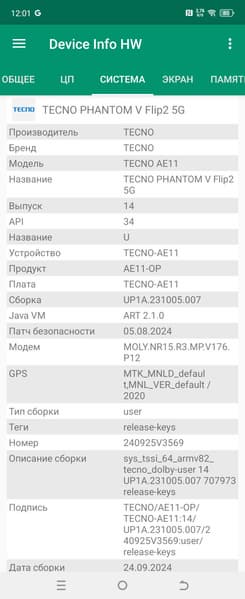В качестве программной платформы Tecno Phantom V Flip2 5G использует ОС Android 14 с собственной оболочкой HiOS 14. Интерфейс добротный, хорошо оптимизированный, без навязчивой рекламы, с полным доступом ко всем сервисам Google. Верхняя шторка разделена на две части в зависимости от места оттягивания.