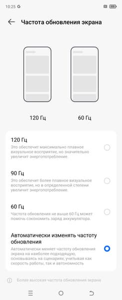 В настройках экрана можно включить режим с повышенной до 90 и 120 Гц частотой обновления: