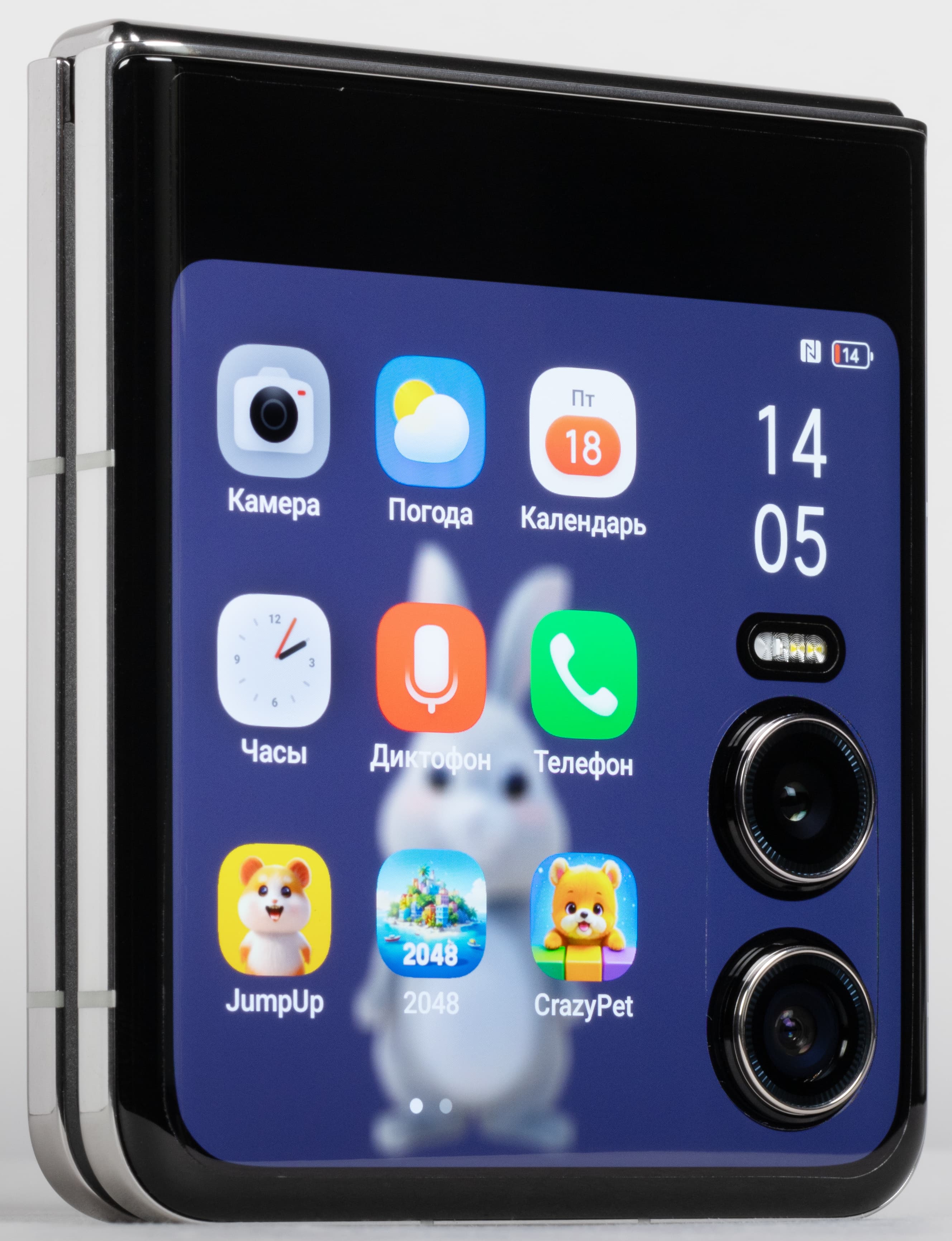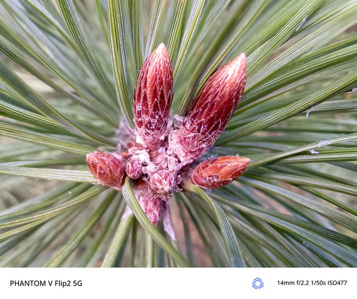 Смартфон Tecno Phantom V Flip2 5G оснащен двумя полноценными снимающими тыльными камерами: основной и широкоугольной. Длиннофокусного объектива и оптического зума здесь нет.
