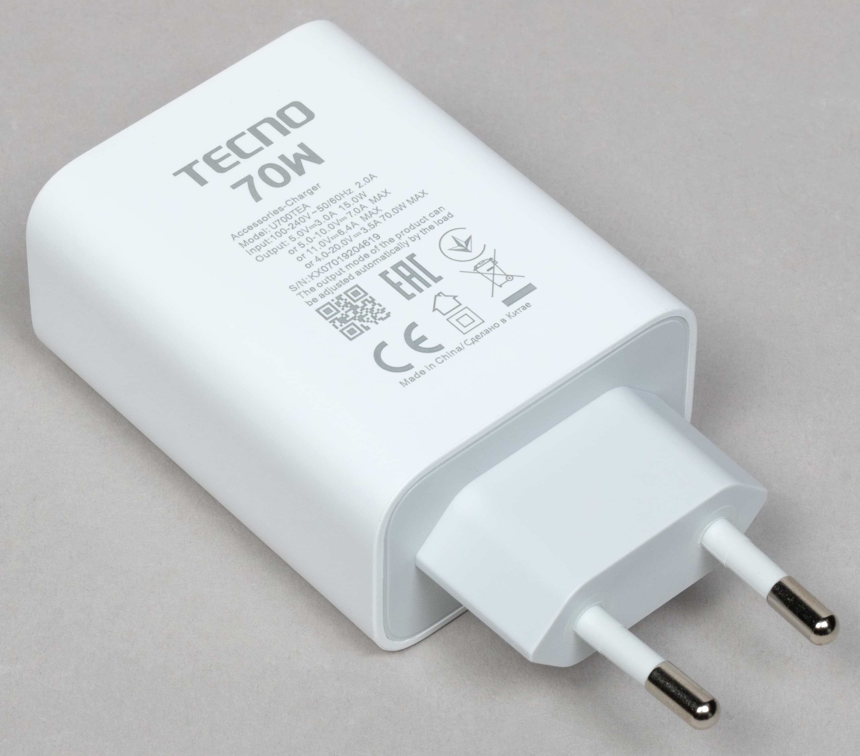 Комплект включает интерфейсный кабель и зарядное устройство с максимальной выходной мощностью 70 Вт. Также в коробке со смартфоном нашлись защитный чехол и комплект украшающих наклеек.