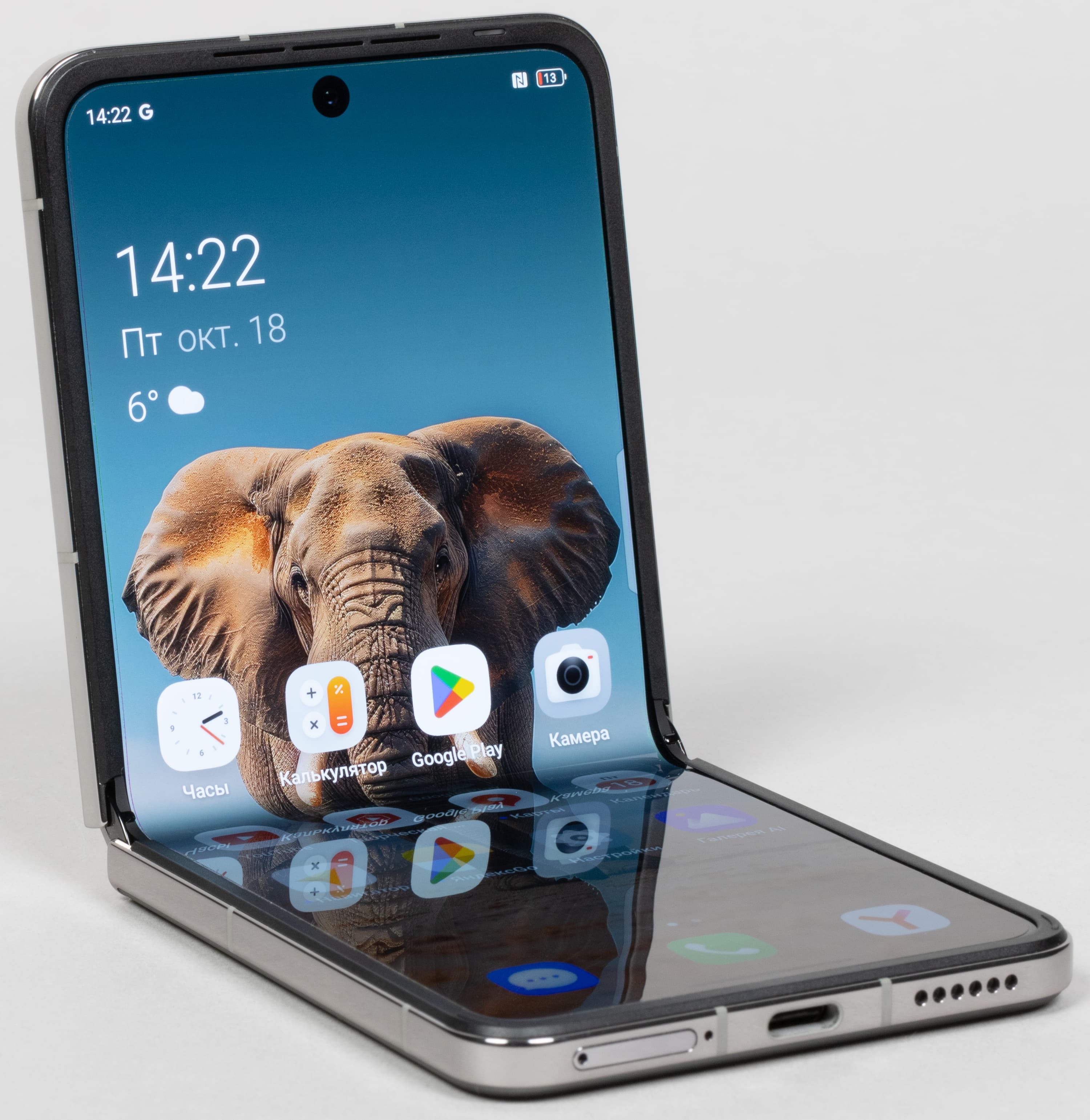 При раскрытии половинок шарнир способен надежно удерживать створки в любых положениях примерно от 30 до 150 градусов, в конечных положениях срабатывает доводчик. В полностью разложенном состоянии половинки фиксируются надежно, иногда смартфон даже удобнее просто класть в карман как обычный моноблок, чтобы не складывать, а потом не раскладывать его лишний раз.
