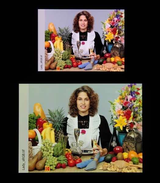 Соответственно, цветовой охват в случае изображения с профилем sRGB при выбранном профиле Яркие цвета и при выводе в ПО Галерея AI немного шире sRGB:
