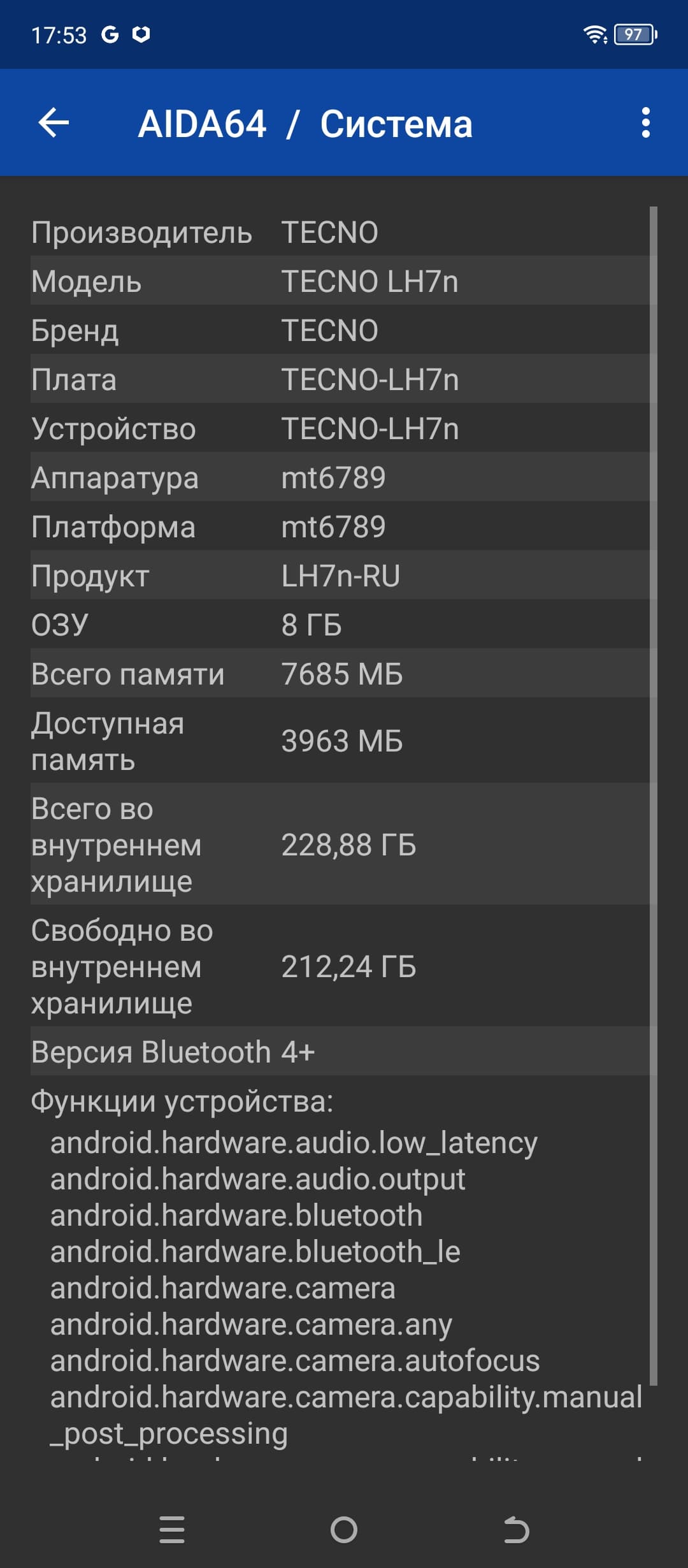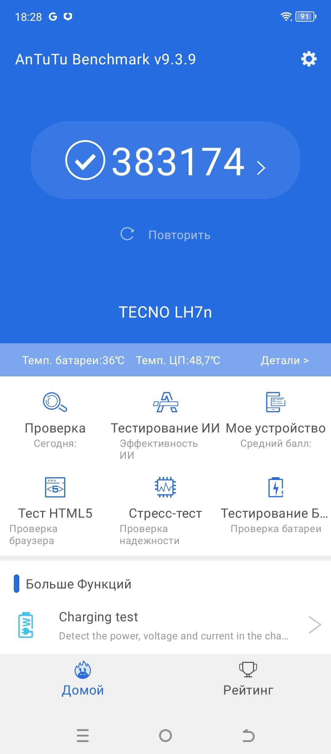 Платформа Helio G99 — достаточно популярная, она производится по техпроцессу 6 нм, но ее лучшие дни давно миновали, по сегодняшним меркам она уже устаревшая и в самом лучшем случае средняя по мощности. В AnTuTu она набирает менее 400 тысяч баллов. Впрочем, уж для плавной работы интерфейса ее мощи точно должно хватать, однако на практике интерфейс почему-то притормаживает.