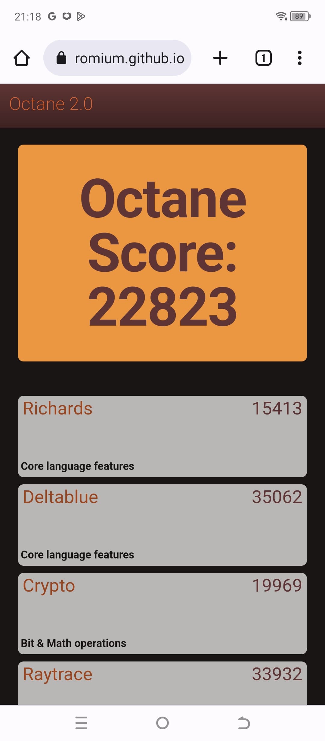 | Google Octane 2 (больше — лучше) | 22823 | 27796 | 29329 | 27070 | 31919 |