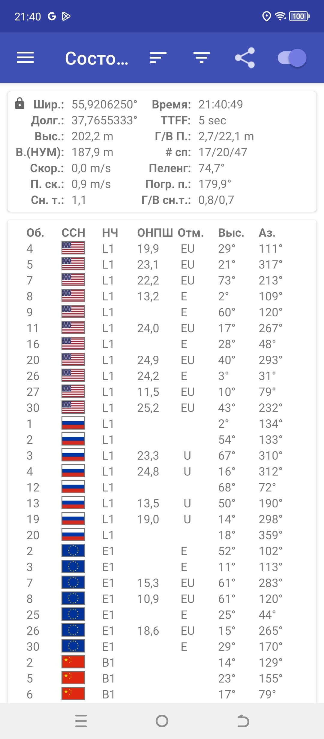 Одноканальный модуль спутниковой навигации работает с GPS, а также Глонасс, Galileo и BDS. Первые спутники при холодном старте обнаруживаются быстро, точность позиционирования не вызывает претензий.
