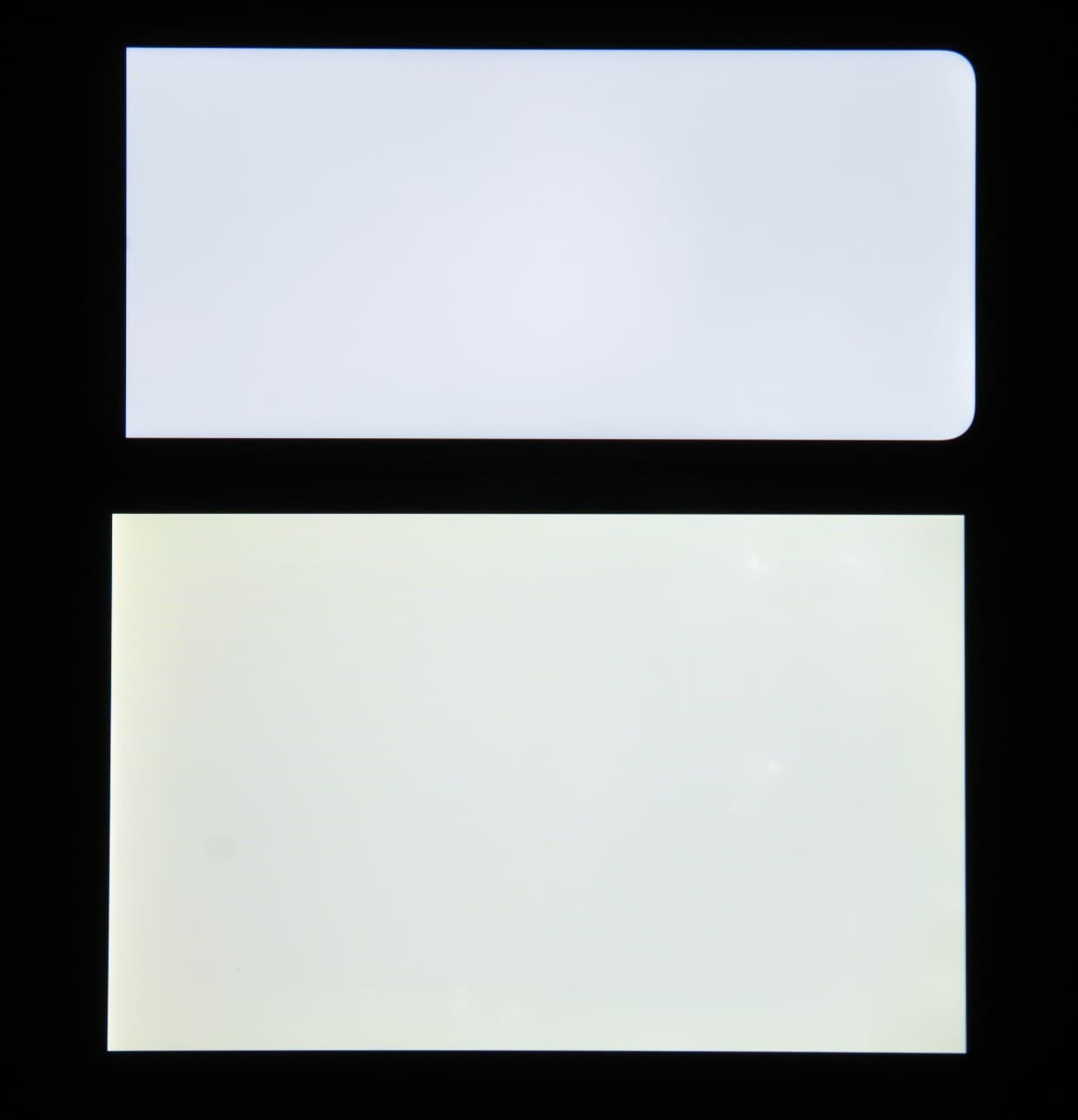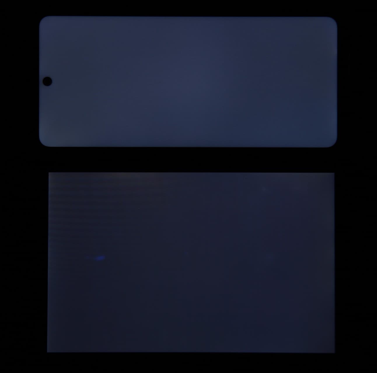 При перпендикулярном взгляде равномерность черного поля средняя (для наглядности яркость подсветки на смартфоне установлена на максимум):