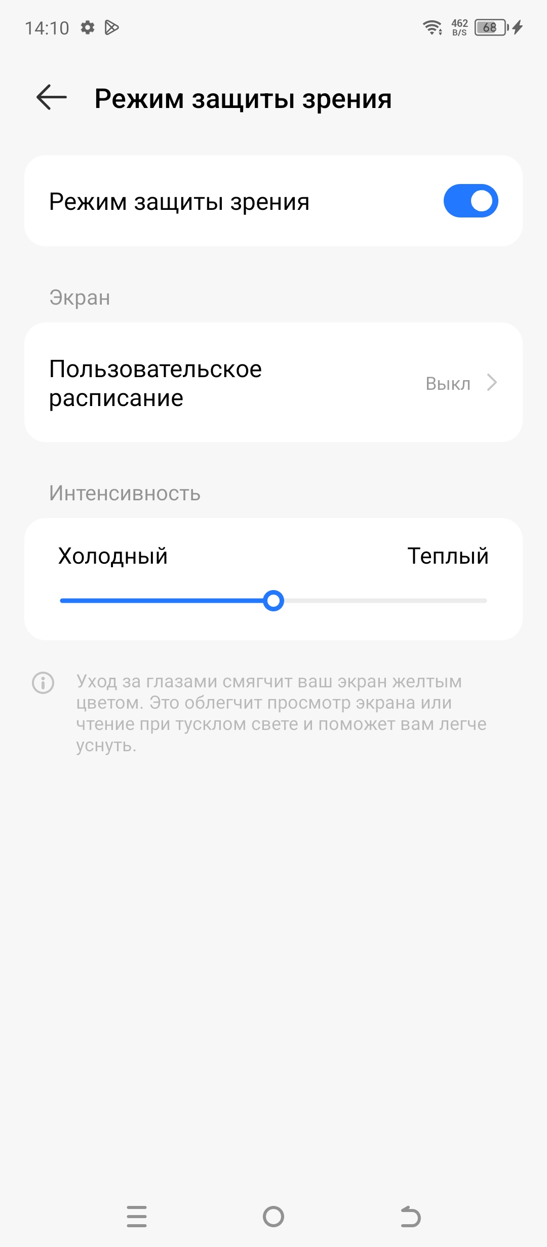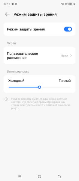 Присутствует настройка, позволяющая снизить интенсивность синей компоненты.