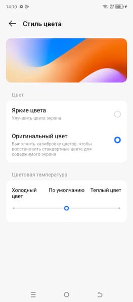 Фотография выше получена после выбора профиля Оригинальный цвет в настройках экрана. Всего профилей два.
