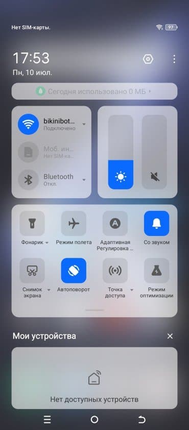 Верхняя шторка разделена на две части. На месте официальный магазин приложений и доступ к сервисам Google, также имеются другие предустановленные магазины, в том числе собственные — Palm Store, Ru Store, AHA Games. Предустановленных программ тоже предостаточно. Интерфейс типичный китайский, со множеством дополнительных функций, всплывающих панелей и кнопок — тут всё можно подстроить под свой вкус.