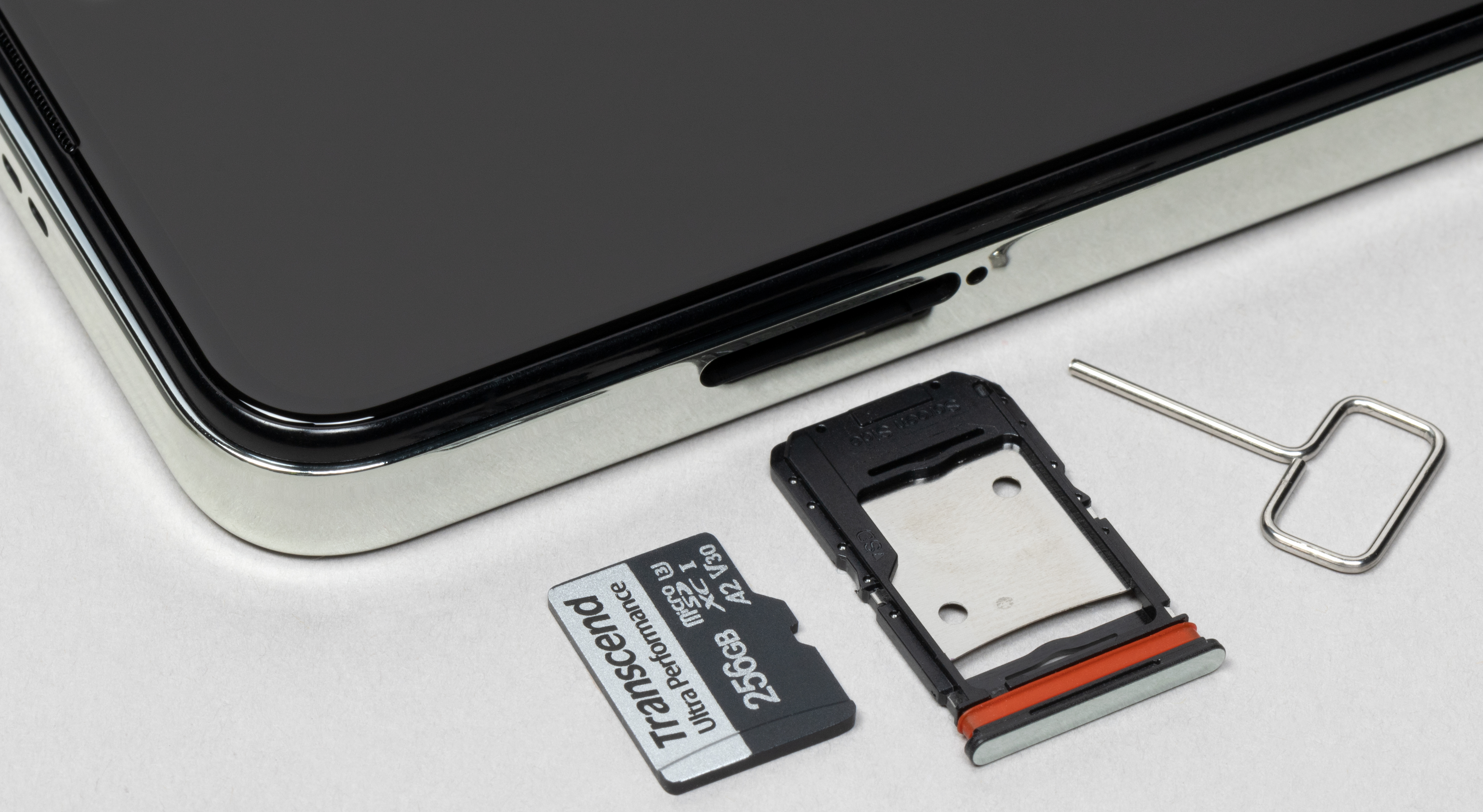 В разъем на левом боку можно установить две карты Nano-SIM (с одной стороны салазок) и одновременно карту памяти microSD (с другой стороны).