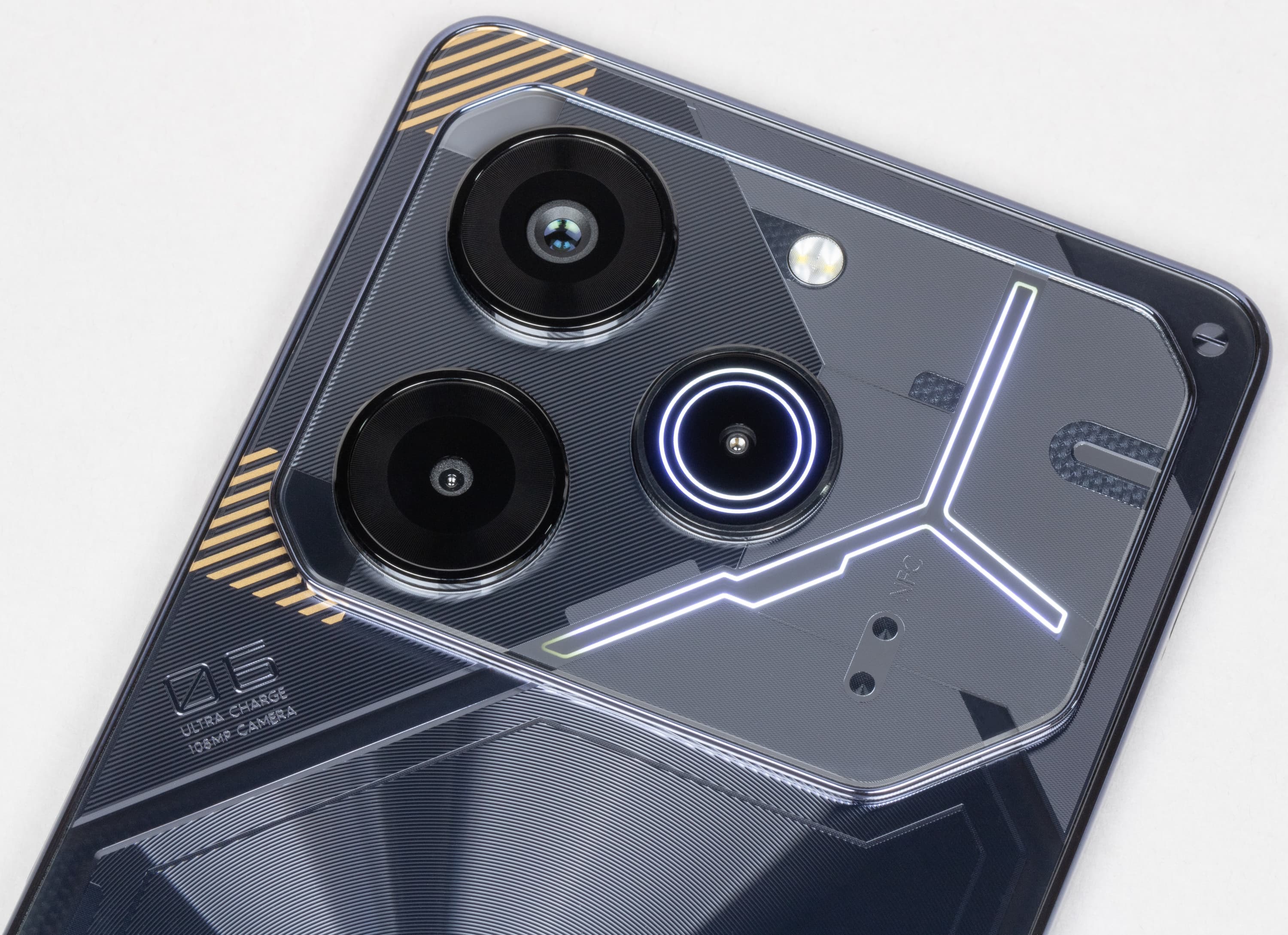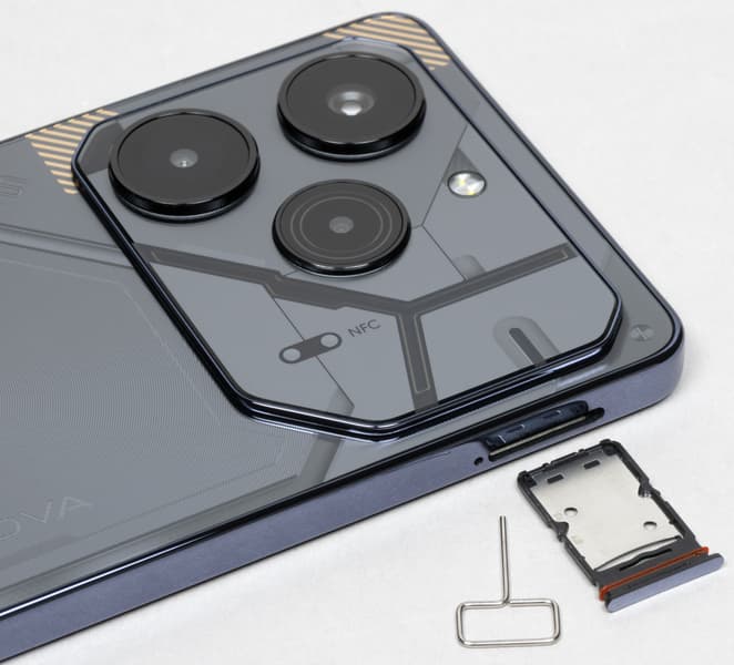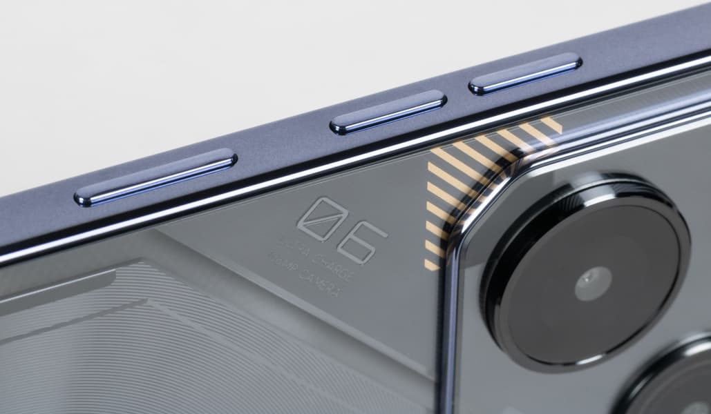 Tecno Pova 6 Pro 5G продолжает использовать в своем дизайне техногенный стиль футуристичных роботов Турбо Меха, поскольку серия задумывалась как игровая. Общий образ с прямыми рублеными чертами без обтекаемых форм и загнутого переднего стекла экрана дополнен затейливой текстурой на спинке.