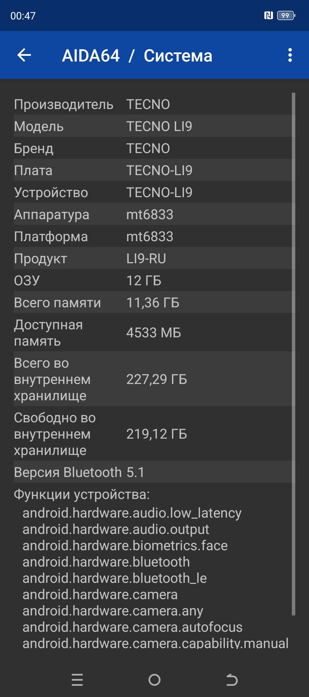 У смартфона Tecno Pova 6 Pro 5G хорошие сетевые возможности. Поддерживается большинство диапазонов мобильных сетей 4G и 5G, два диапазона Wi-Fi 5 и Bluetooth 5.3, есть поддержка NFC. В нашей версии смартфона не поддерживаются сети 5G и нет поддержки e-SIM. На практике в пределах городской черты московского региона аппарат демонстрирует уверенную работу в беспроводных сетях, не теряет связь, быстро восстанавливает связь после вынужденного обрыва. Все необходимые встроенные датчики, вплоть до гироскопа, на месте.