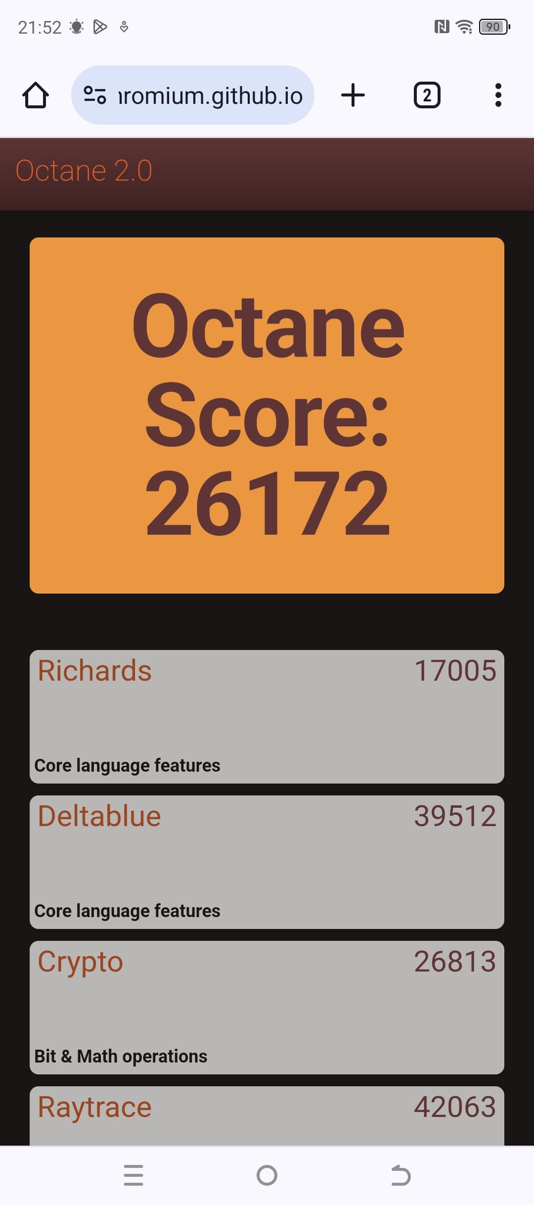 | Google Octane 2 (больше — лучше) | 26172 | 24105 | 24923 | 30529 | 39276 |