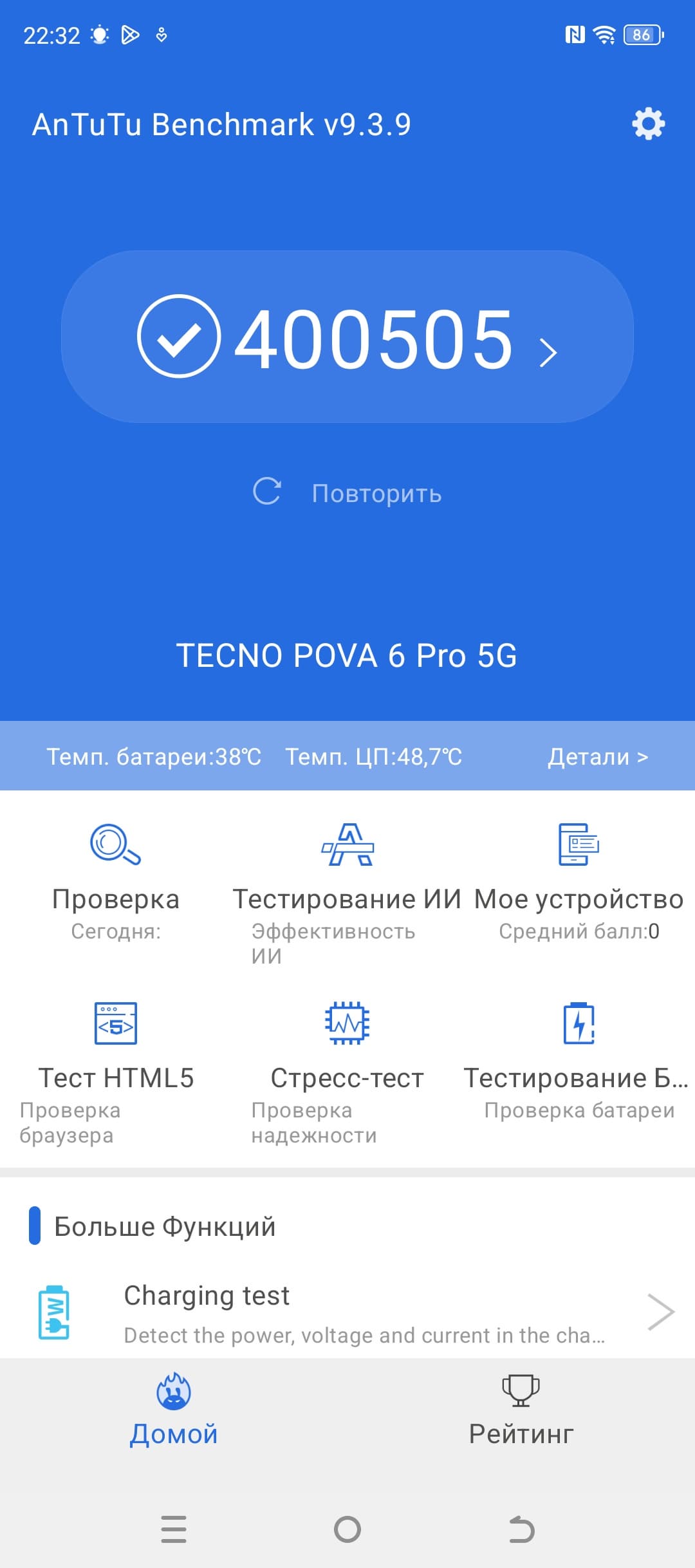 Тестирование в комплексных тестах AnTuTu и GeekBench: