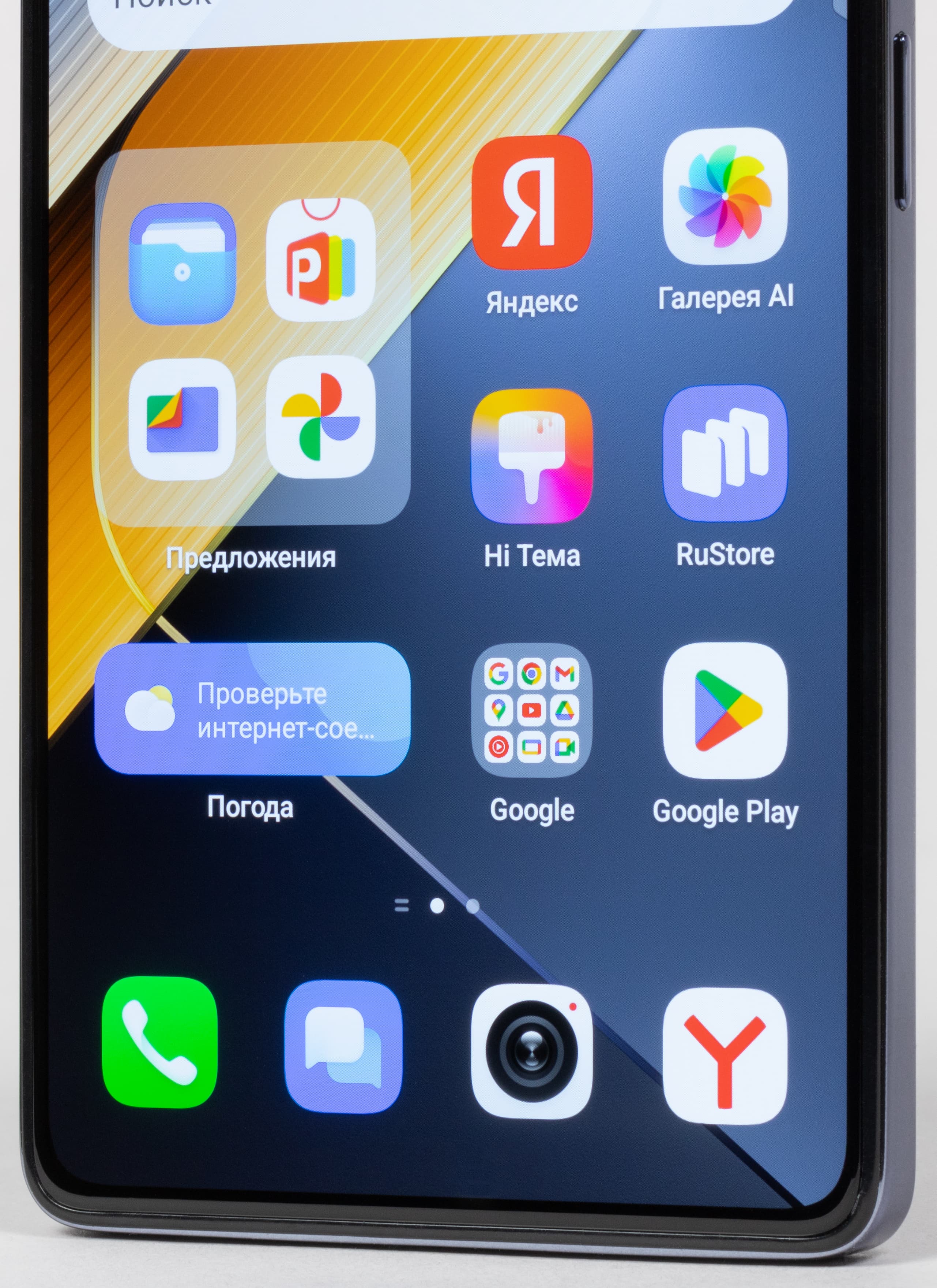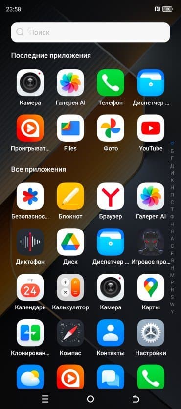 В качестве программной платформы Tecno Pova 6 Pro 5G использует ОС Android 14 с собственной оболочкой HiOS 14. Сейчас это чистая, аккуратная, хорошо переведенная оболочка, с лаконичным и понятным оформлением. Нет никакой всплывающей рекламы, коей теперь грешат не только Xiaomi, но и некоторые другие китайские производители. Функция экрана Always On, как и прежде, «урезанная»: она не умеет работать постоянно, экран с информацией включается лишь при прикосновении. На месте и подхваченная китайскими производителями в едином порыве модная функция Dynamic Port, которая, по аналогии с Dynamic Island, создает вокруг фронтальной камеры динамически отображаемую зону с некоторой текущей информацией. Оттягиваемая шторка разделена на две части. Официальный магазин приложений Google Play и доступ к сервисам Google — на месте.