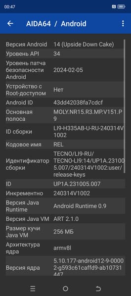 - Операционная система Android 14, HiOS 14
