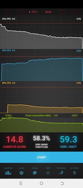 Тест на снижение производительности при нагреве мы проводим с помощью программы Burnout Benchmark, которая позволяет нагружать CPU, GPU и NPU: